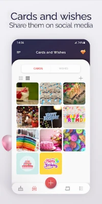 ๐ Send Cards and Wishes: Birthday Reminder & Calendar comes with pre-made templates that you can use to send birthday wishes and cards through Facebook, WhatsApp, and other social media platforms. You can even save cards and wishes to the app and easily send them to multiple people. This feature makes it easy to stay connected with your loved ones, even if you can't be there in person.