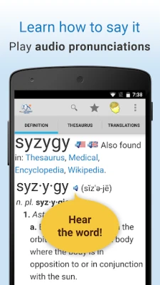 Dictionary Pro is the premium version of The Free Dictionary app, featuring offline dictionary and thesaurus content with NO ads. Here's what you get: