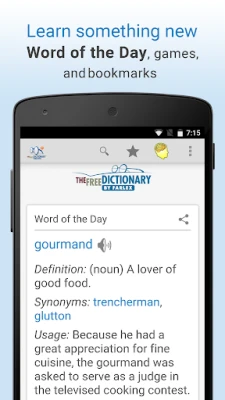 * For app developers: TheFreeDictionary.com app has the ability to be accessed by other apps with API calls (Contact Farlex for instructions on accessing TFD).