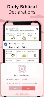 Gracify is your #1 Christian meditation App designed to help you connect with God through daily Christian prayer, Christian journal, Bible journaling, bible study, motivation, Christian declarations, proclamations, daily devotionals, biblical meditation and daily prayer meditation free. All bible meditations, guided journal, devotionals, daily prayers and daily declarations are biblical to help you stay focused and grounded in your faith, directing your inner dialogue to God and the plans He has for your life.
