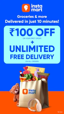 With Instamart, get instant delivery of groceries in just 10 minutes!* Order Vegetables, Kitchen essentials, Electronics, Beauty products, Home decor etc - right to your door. Shop from over 30,000+ products from the best grocery shopping app.
