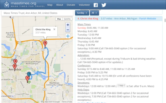 The purpose of the Mass Times ministry is to help Catholics get to Mass by helping them find churches and worship times worldwide. We do this by hosting and sharing the most comprehensive database of Catholic churches and worship times in existence. Dioceses, parishes, and many volunteers help us keep the database current. We also host the masstimes.org website that our visitors use to search for Mass times.