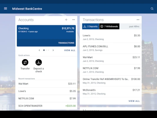 Midwest BankCentre is your personal financial advocate that gives you the ability to aggregate all of your financial accounts, including accounts from other banks and credit unions, into a single view. It’s fast, secure and makes life easier by empowering you with the tools you need to manage your finances.