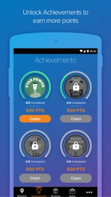 2. Start a Mission! Answer simple questions while you shop or eat, and earn points for your work. As you progress, you will unlock achievements and level-up.