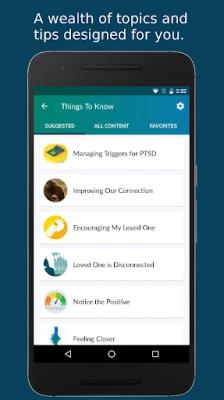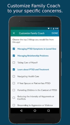 PTSD Family Coach is for family members of those living with posttraumatic stress disorder (PTSD). The app provides extensive information about PTSD, how to take care of yourself, how to take care of your relationship with your loved one or with children, and how to help your loved one get the treatment they deserve. The app also provides a great deal of information that is specific to Veterans and active duty members of the military.